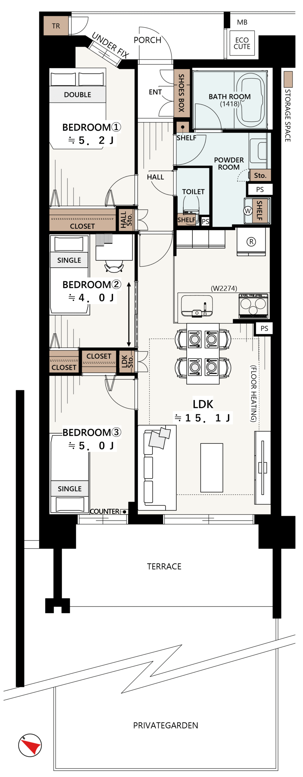 • 床暖房付き!約15.1帖LDK&陽当たり良好